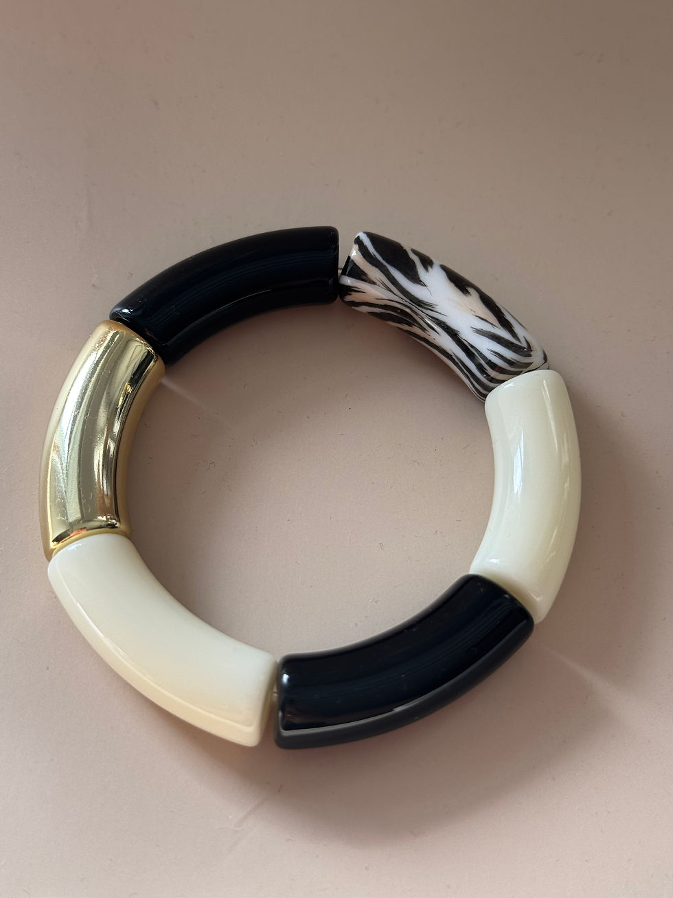 Bracelet perles acryliques Suzanne Noir ambre et léopard