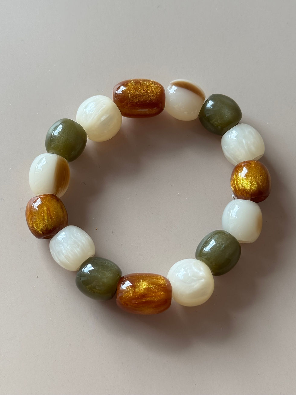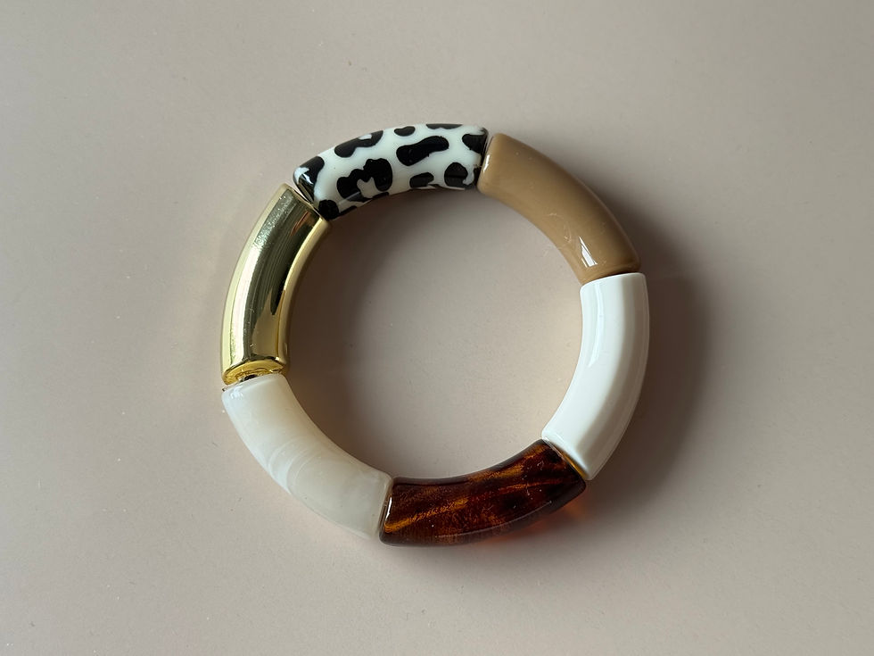 Bracelet perles acrylique Suzanne beige ambre léopard