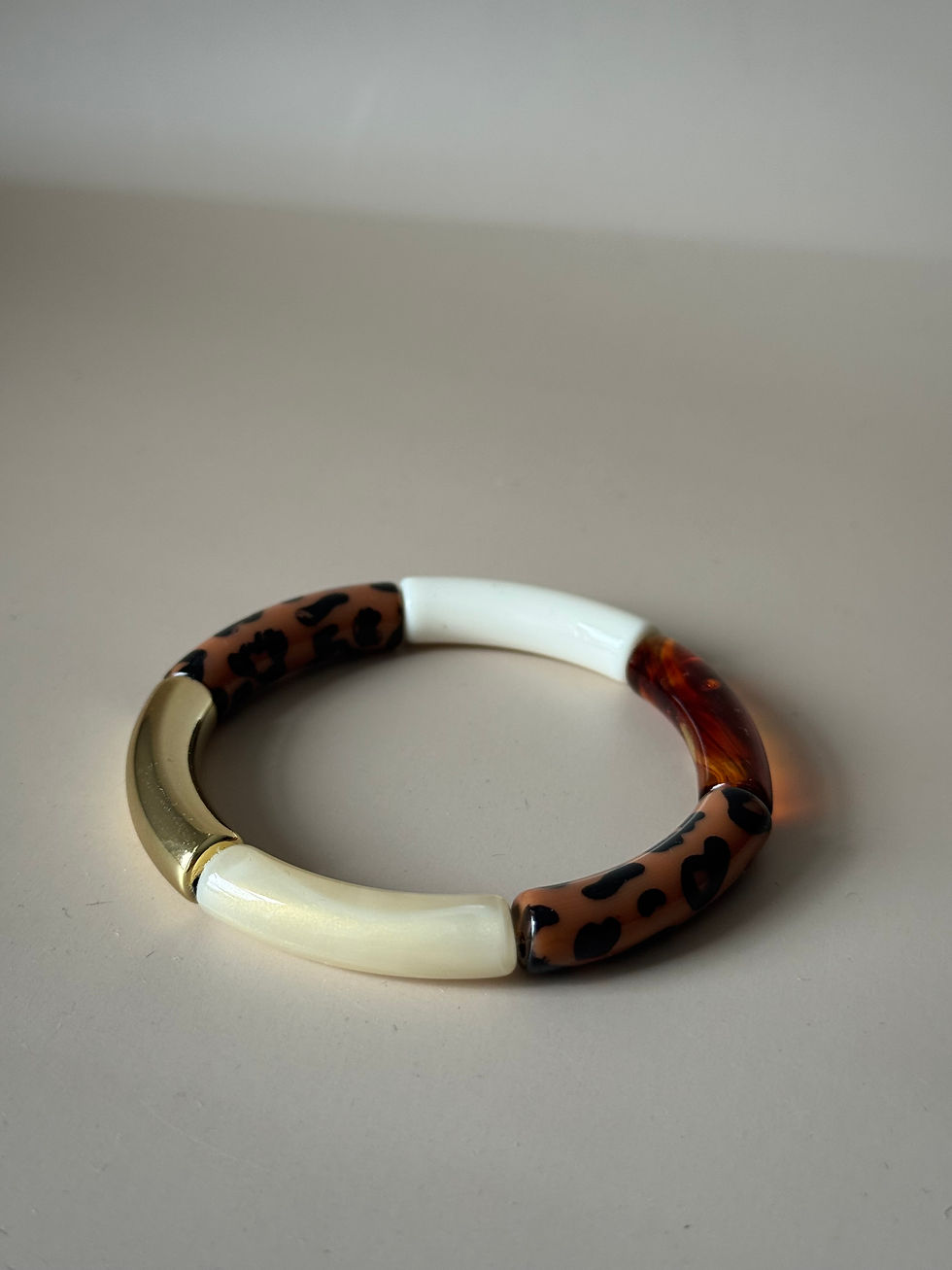 Bracelet perles acryliques Jade Léopard beige doré